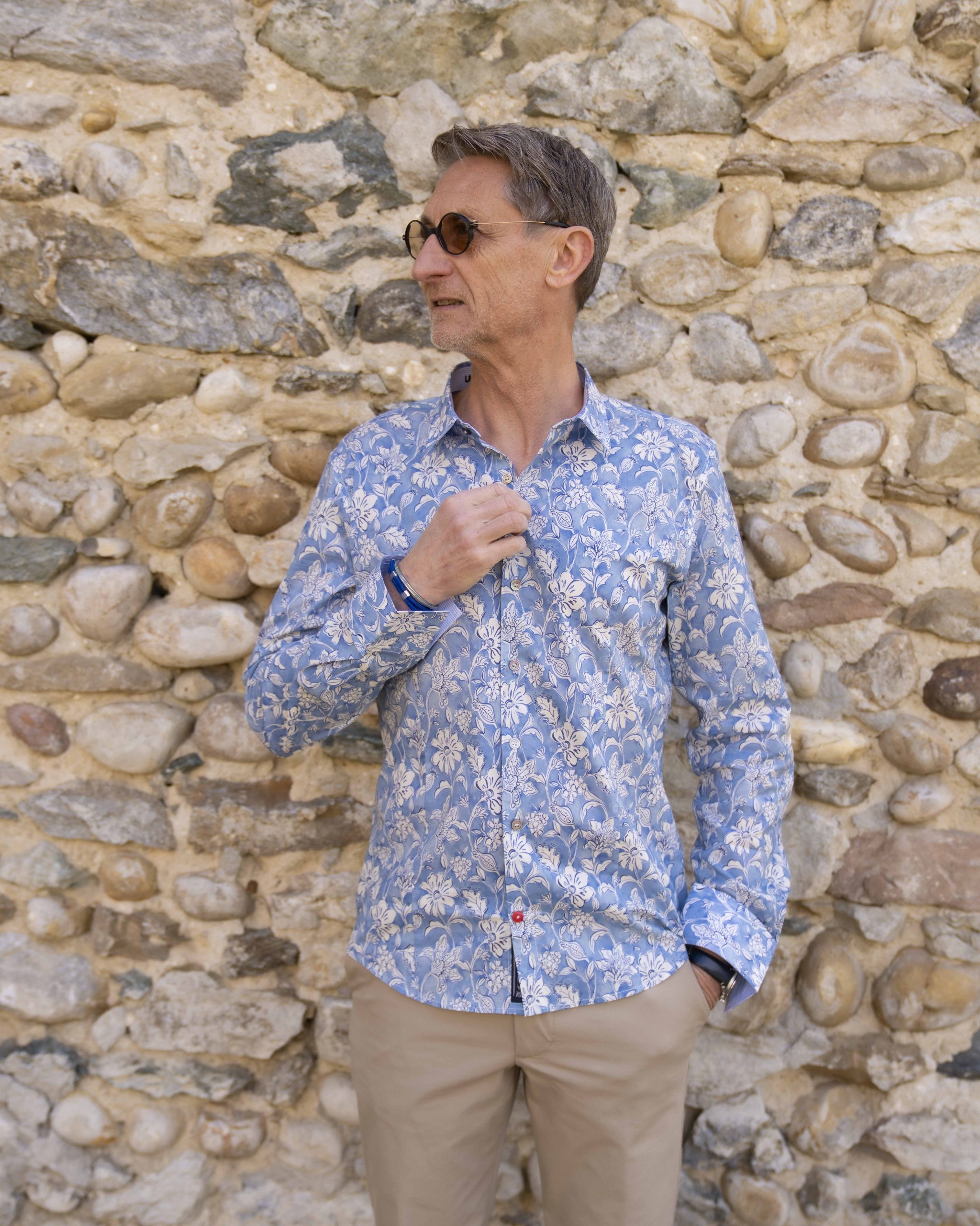 Craquez pour cette chemise « PIO » de la marque française NUMEROLOG1E ! On adore son imprimée fleurie blanc sur fond bleu,