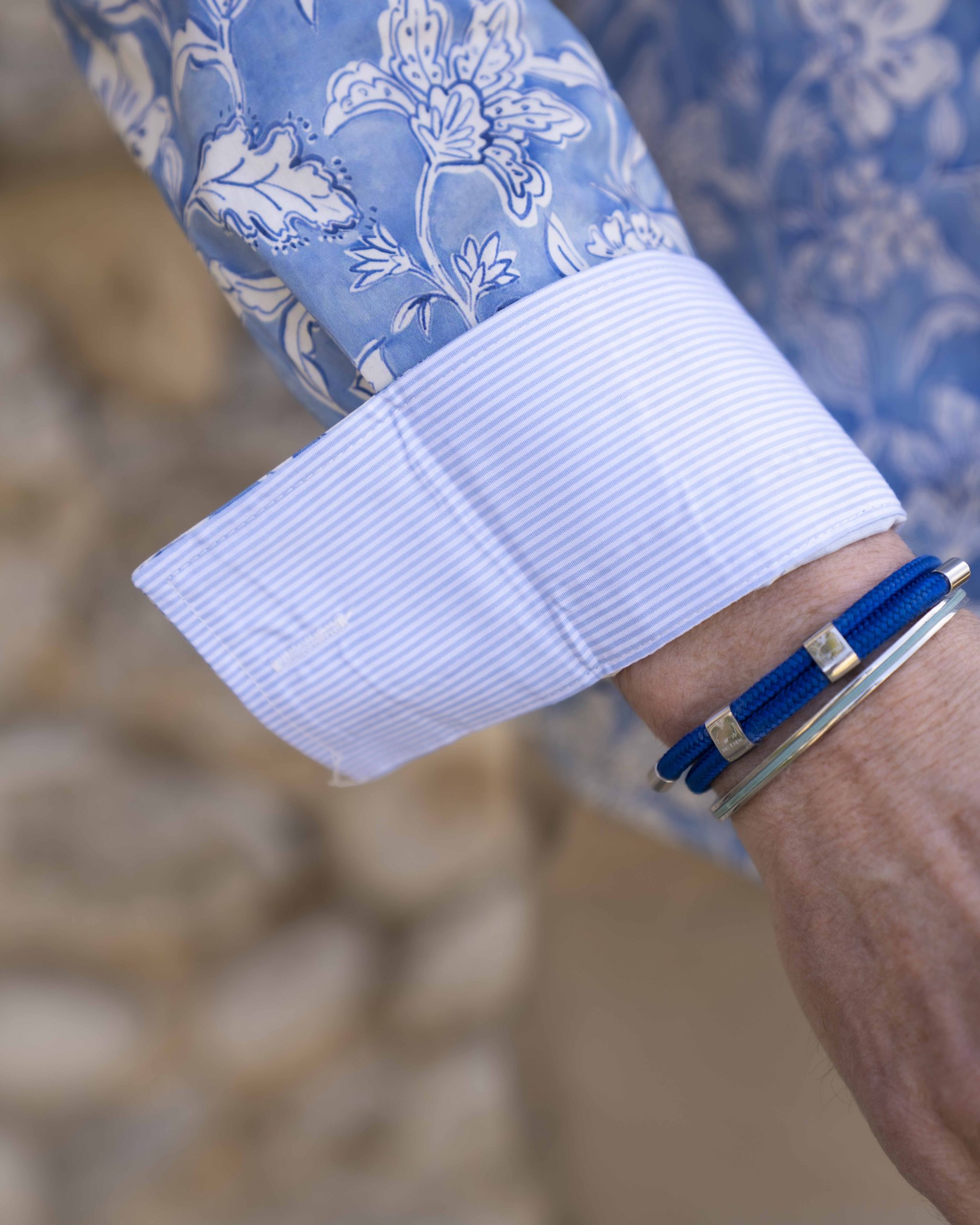 – Un autre imprimé à rayures à divers endroits sur la chemise (revers de poignets, revers et intérieur de col)